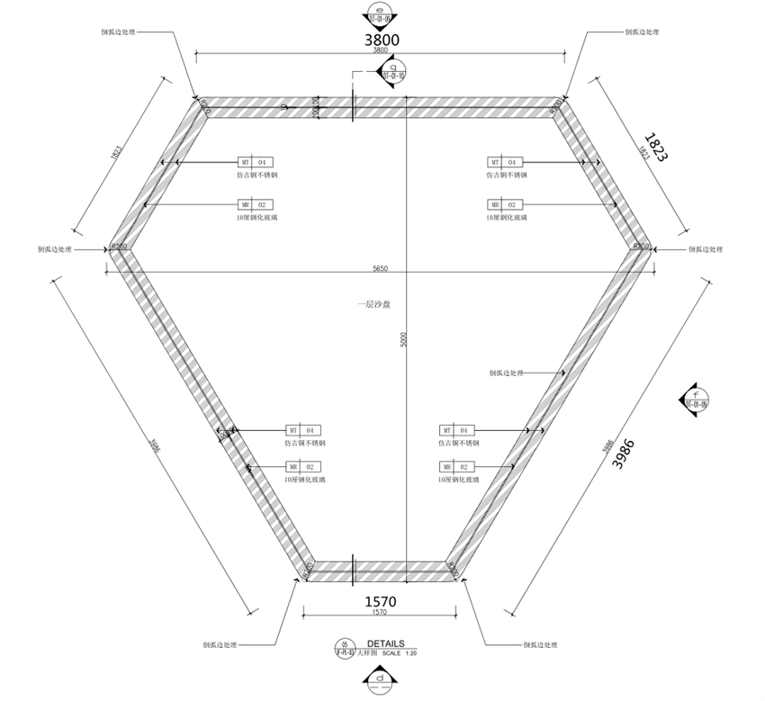 沙盤底座尺寸暫定如下圖所示,具體以采購文件發(fā)布時提供的施工圖為準: